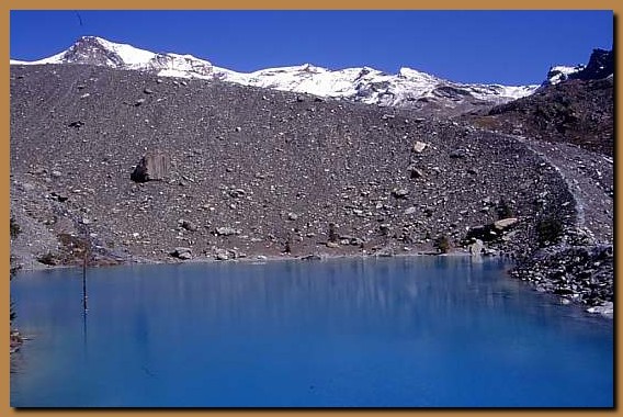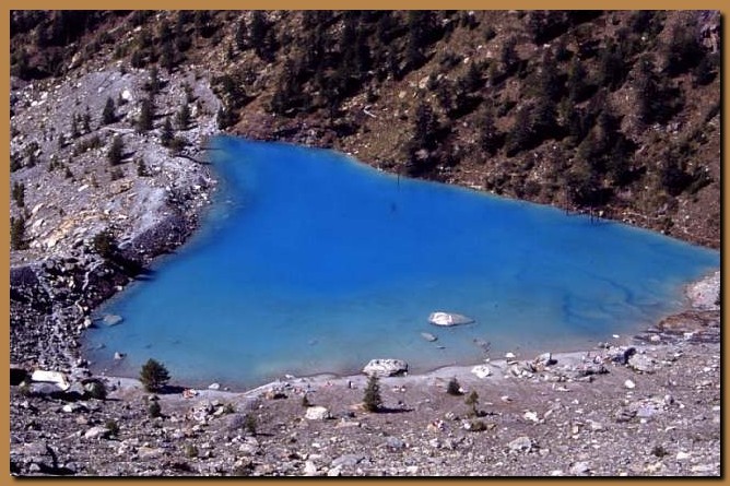 L'inconfondibile Lago Blu in Val d'Ayas (m.2215) aveva un colore azzurro assolutamente unico, risultato delle