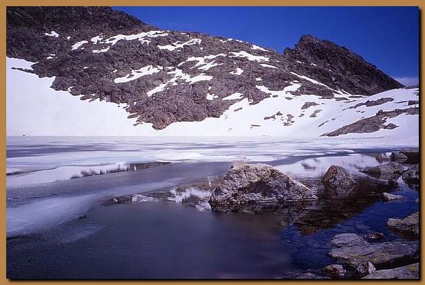 costantemente tutto l'anno. Situato a quota m.2843, è spettacolarmente circondato da un'alta catena