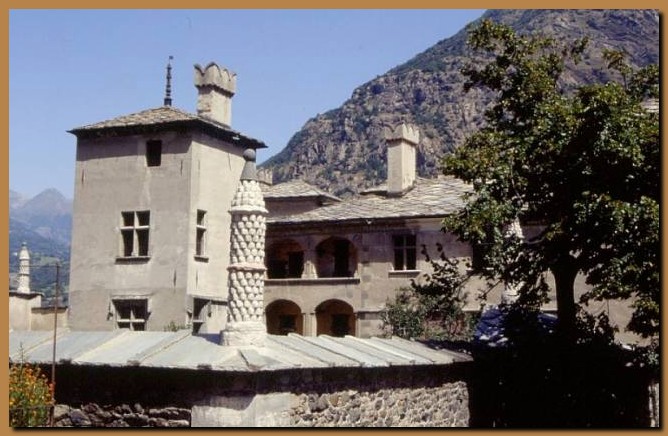 è il castello più famoso della Valle d'Aosta: un articolato complesso di torri e strutture merlate e cicli pittorici in stile gotico.