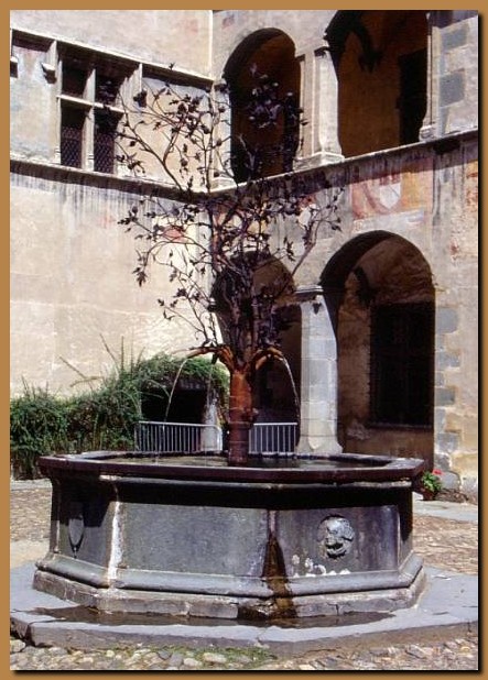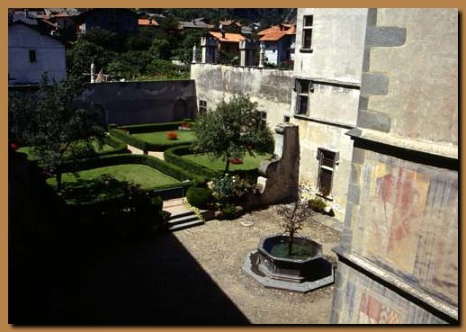 Nei pressi di Verres, è una delle testimonianze più significative di quella fase in cui il gotico nordico si trasforma in Rinascimento ed in Manierismo. Il Castello, già proprietà del Vescovo d'Aosta, restaurato dagli Challant nel XV secolo, avrebbe preso l'aspetto attuale tra la fine del '400 ed i primi del '500; di particolare rilievo il cortile-giardino con la celebre fontana del melograno in ferro battuto, le logge, gli affreschi, i soffitti a cassettoni decorati, la ricchezza degli ambienti e degli arredi d'epoca. |