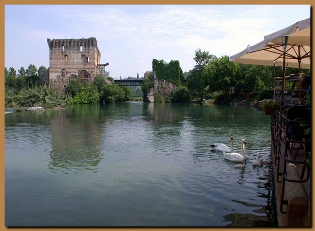 Di fronte al borgo si apre lo scenario del Ponte Scaligero, che attraversa il fiume.