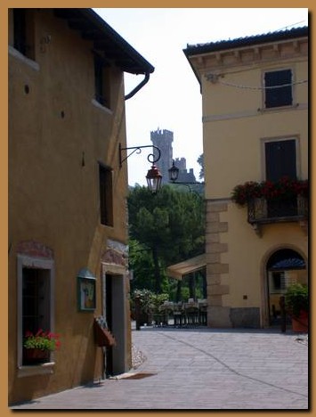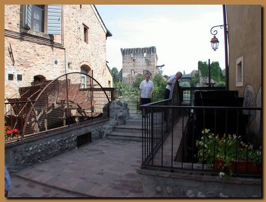 Sullo sfondo, tra i vicoli di Borghetto, si scorge la sagoma del Castello di Valeggio