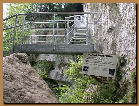 Il percorso prevede anche un passaggio ardito su scale metalliche, sconsigliabile a chi