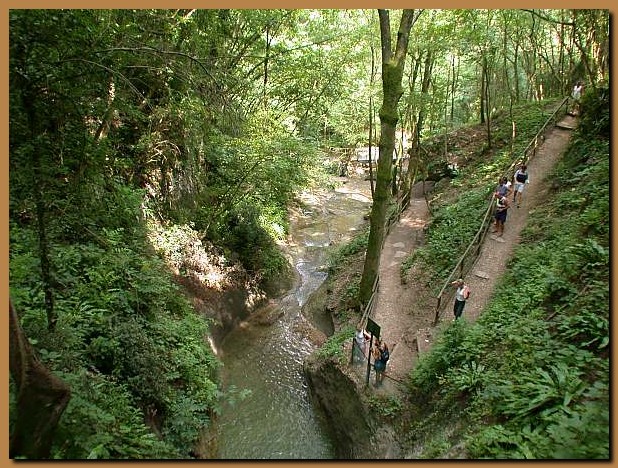 Da uno dei numerosi ponticelli che attraversano i ruscelli è possibile osservare le cascatelle