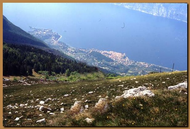 La vista del lago dal Monte Baldo. La cittadina che si scorge è Malcesine.