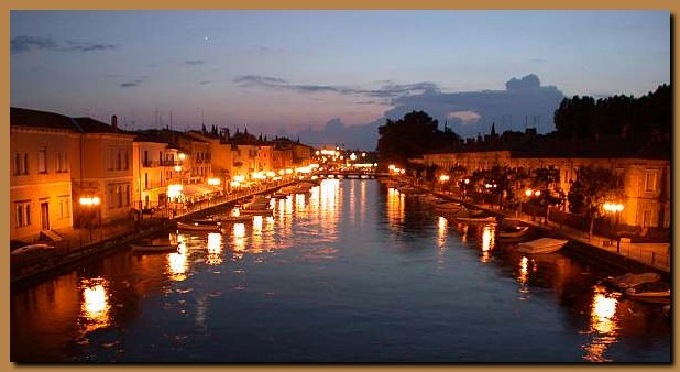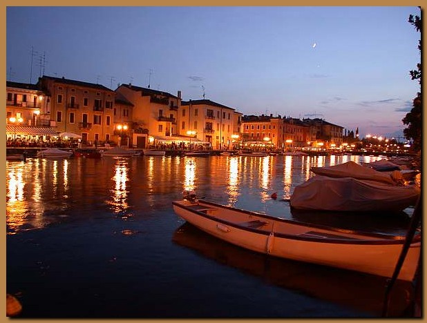 Nel punto in cui il fiume Mincio (nella foto, al crepuscolo) esce dal Lago di Garda,