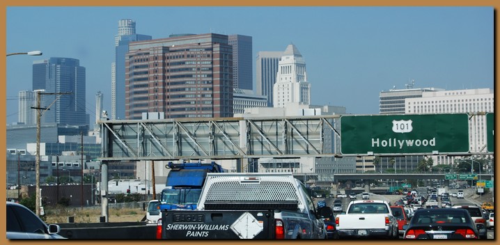 Los Angeles si presenta enorme e piatta se si esclude la piccola zona di grattacieli della downtown. Si articola in 88 quartieri diversissimi tra loro (si è calcolato che a Los Angeles vengano parlate 86 tra lingue e dialetti), tutti circondati ed immersi in un traffico caotico e soffocante. Possono essere necessarie moltissime ore per attraversare i 100 Km (!) che portano da una parte all'altra della metropoli (l'entrata negli svincoloni che attanagliano la città degli angeli non è regolata da precedenze, ma da semafori!!)