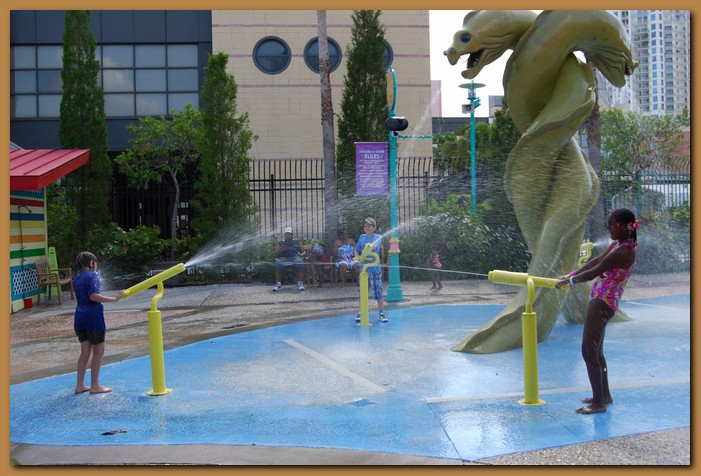 La zona dei giochi d'acqua, all'esterno dell'acquario, dove i bambini trovano refrigerio nelle calde e assolate giornate estive. Difficile schiodarli prima dell'orario di chiusura...![]()