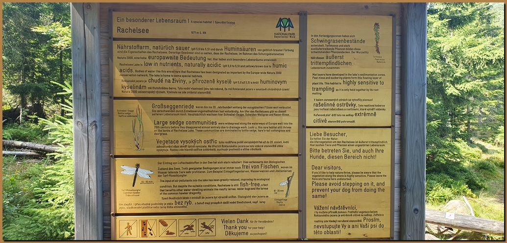 Pittoresco percorso circolare sul Großer Rachel nella foresta bavarese, vicino a Spiegelau. Questa idilliaca escursione circolare parte dal parcheggio P+R di GFall Spiegelau (Schwarzachstraße) e conduce attraverso foreste rustiche, attraversando il leggendario lago Rachelsee e superando imponenti formazioni rocciose fino alla montagna più alta del Parco Nazionale della Foresta Bavarese, il Großer Rachel (1.453 m).