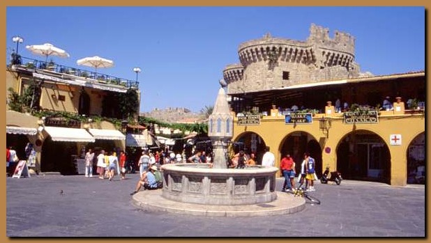 Rodi città è divisa in due parti: una nuova ed una medievale. Il nucleo antico, dove si ergono il Castello, i Palazzi ed i musei è circondato da mura (5 Km). All'interno sono numerose le taverne con musica. |
