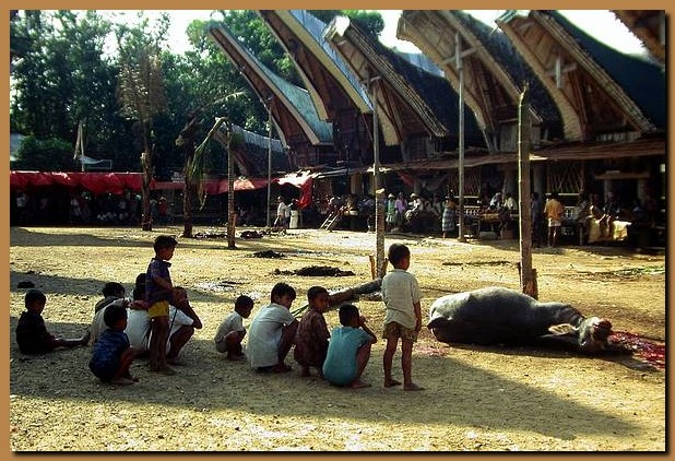 Le cerimonie funebri presso le popolazioni Tana-Toraja sono un'occasione di ritrovo e di festa per tutti