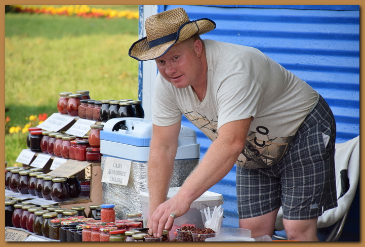 Mercatino di prodotti dell'agricoltura locale: conserve, succhi, miele, frutti di bosco, ecc