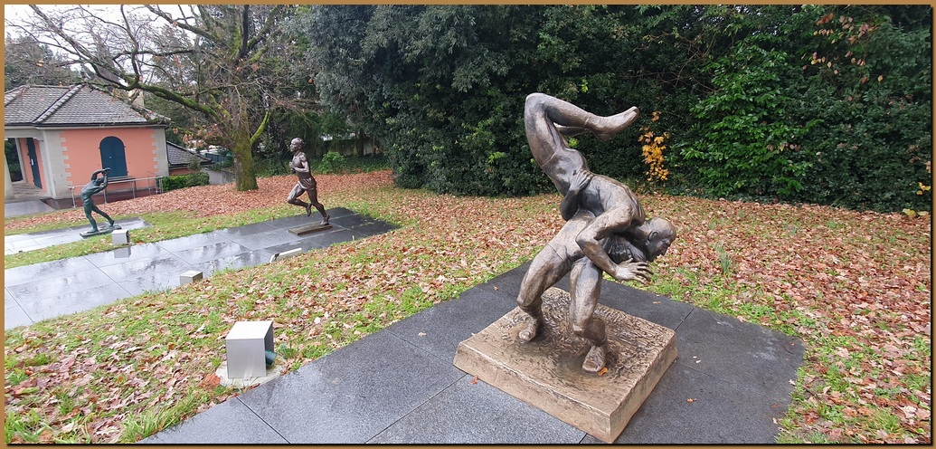 Il museo è circondato da un parco, dove sono esposte varie sculture a tema sportivo, opere di vari autori, quali: Fernando Botero, August Rodin, Niki de Saint Phalle, Jean Tinguely, Lucien Wercollier (Altius).