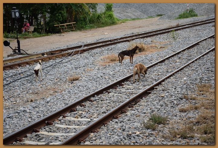 Cani randagi (numerosi in Thailandia) alla stazione![]()